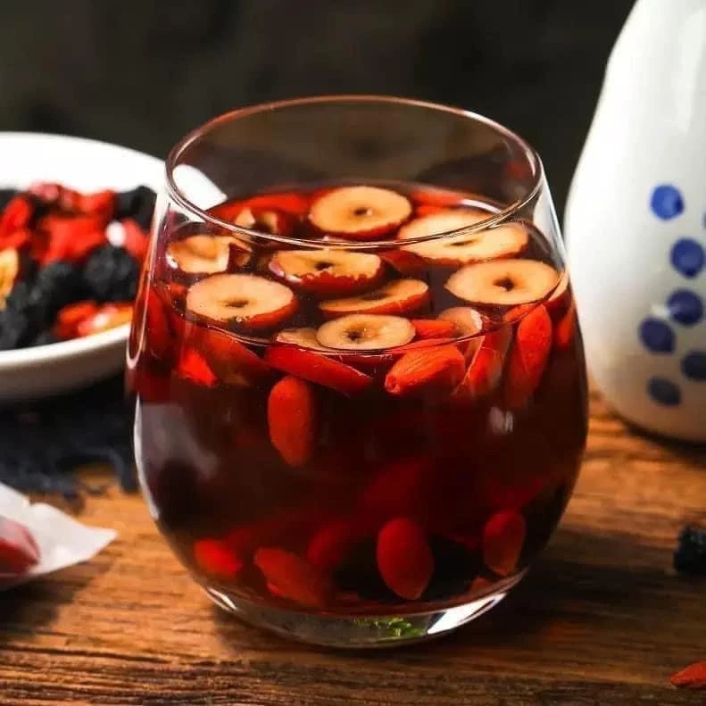 4. お楽しみください: 温かいうちにゆっくりとお飲みください。飲んだ後は、なつめや桑の実をそのままお召し上がりいただくと、食物繊維や栄養素を余すことなく摂取できます。お好みに応じて、2煎目もお楽しみいただけます。\n