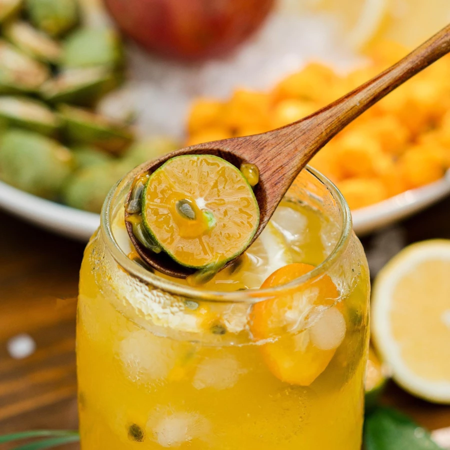 - 冷蔵庫での保管が最適です。パッションフルーツとキンカンの新鮮な風味を保ち、酸化を防ぐのに役立ちます。