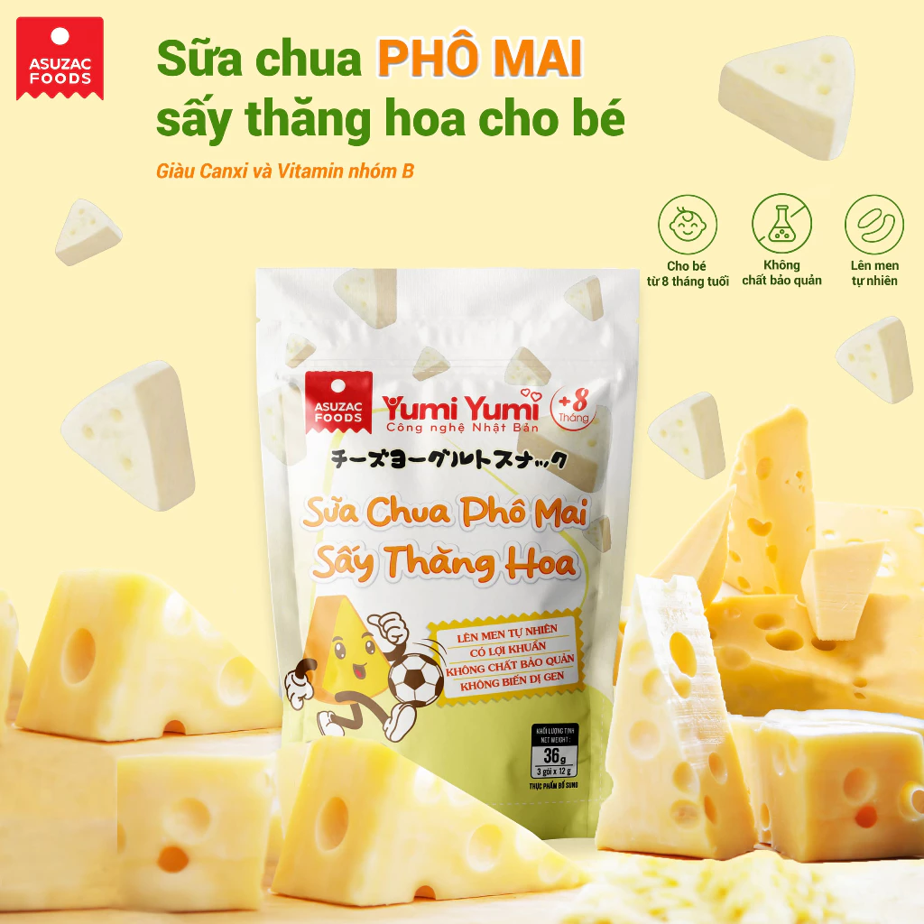 Yumi Yumi Asuzac フリーズドライチーズヨーグルトは、濃厚な味が大好きなお子様への最高の贈り物です。香ばしいチーズヨーグルトキューブがたっぷり入った小皿は、お子様に常にエネルギーと喜びをもたらしてくれるでしょう。