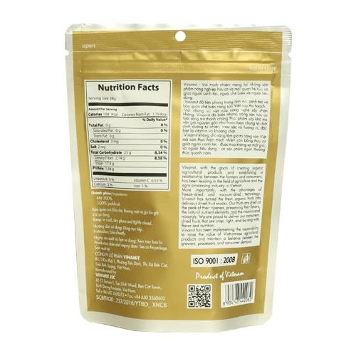 - 厳選された新鮮なジャックフルーツ: 唯一の原材料は、自然に熟したジャックフルーツの果肉です。Vinamitは、砂糖、保存料、油は一切不使用であることを保証します。