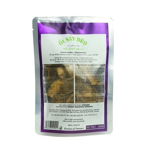- 着色料・保存料不使用: 製品の色は乾燥後のグアバ本来の自然な色です。Vinamitは、弾力性や人工的な風味を出すための有害な化学物質を一切使用しないことをお約束します。