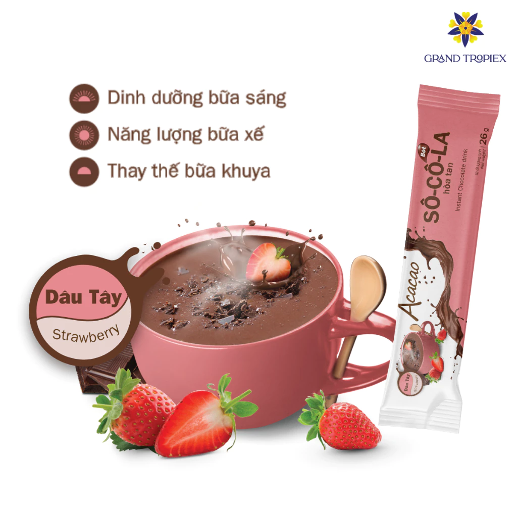 Acacao Strawberry Chocolate Drink Mix, Nutritional & Quick Energy Boost - 286g Box