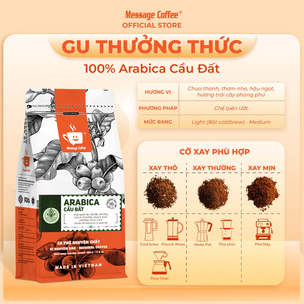 Message Coffee Cau Dat Arabica Cold Brew Coffee Powder 100% Pure Sweet Aftertaste Aromatic 500g