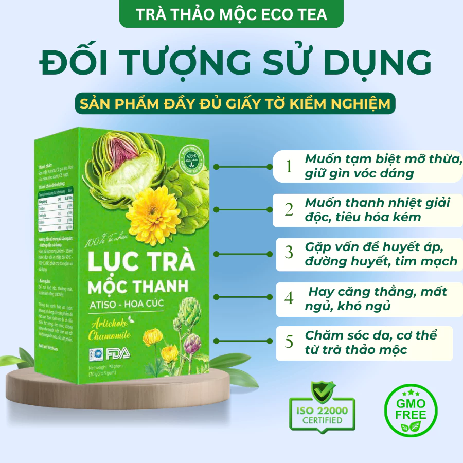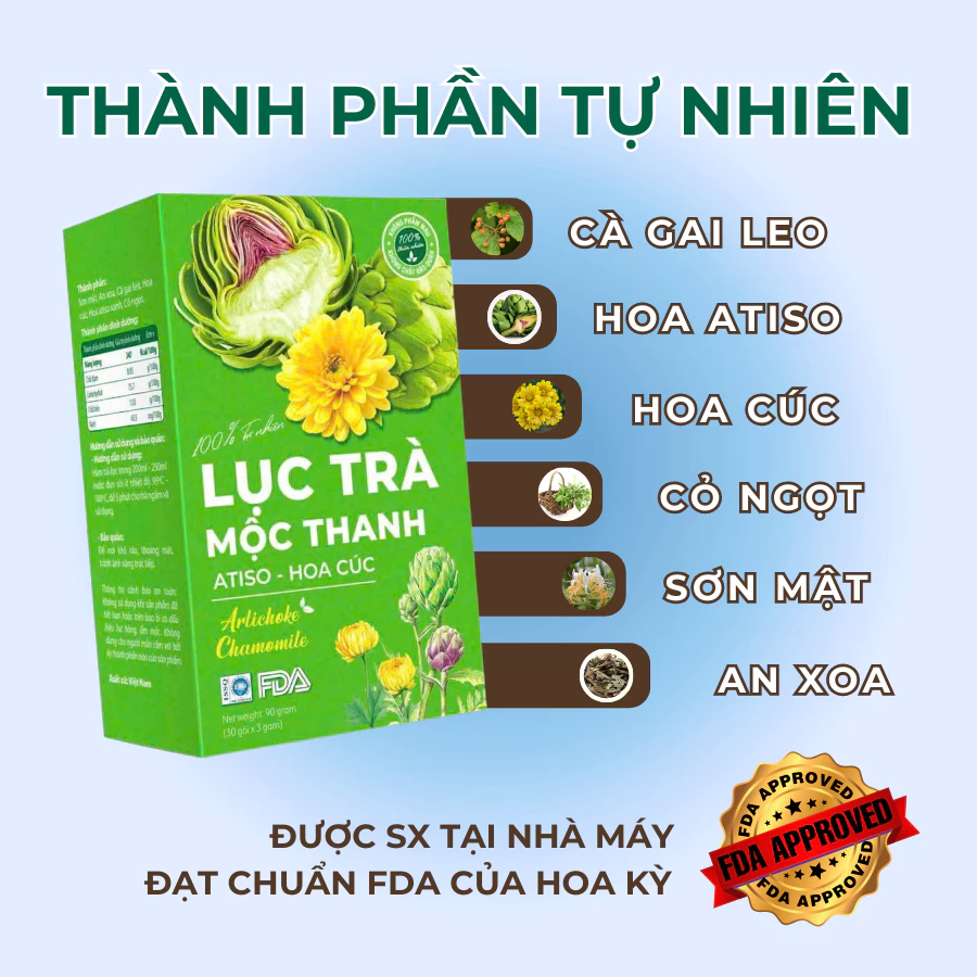 Luc Tra Moc Thanh Filter Tea - Artichoke & Chamomile Tea for Liver Support, Good Sleep, Detox - 30 Bags/Box