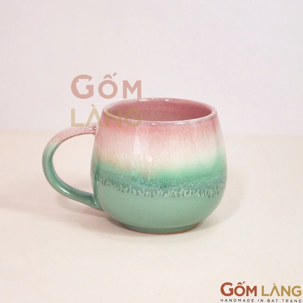 Bat Trang Flame Glaze 360ml Bulbous Mug - Unique Iridescent Pattern (Pink/Blue/Jade)