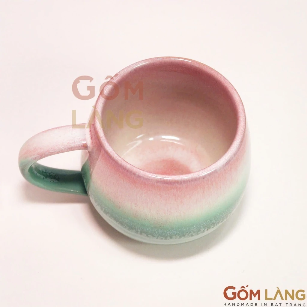 Bát Tràng Fire-Glazed Ceramic Mug 480ml - Pink & Turquoise - Handmade Vietnamese Pottery for Tea & Coffee