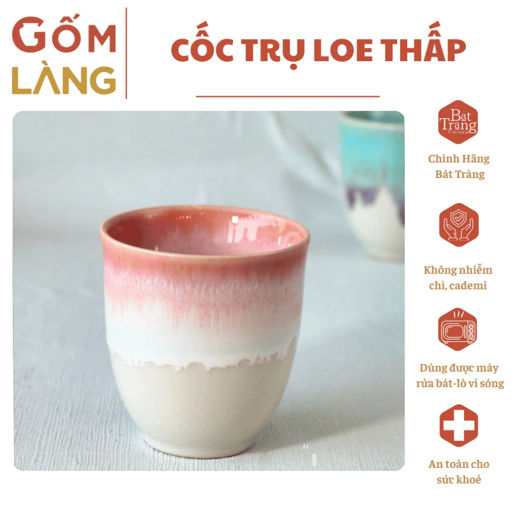 Bat Trang Kiln-Fired Glaze Cup 170ml - Low Flared Cylindrical Premium Ceramic for Health