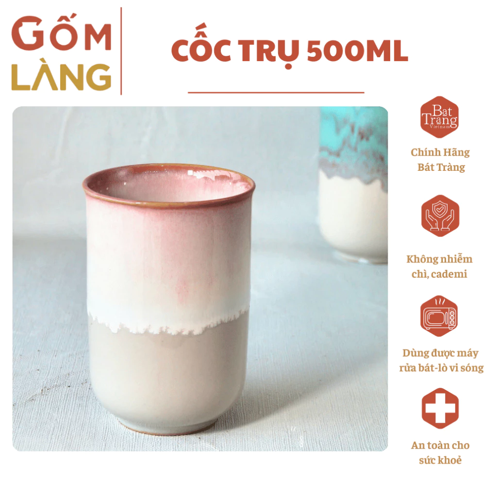 Bat Trang Flame Glaze 500ml Cylindrical Ceramic Mug - Unique Artisan Piece for Coffee, Tea & Water
