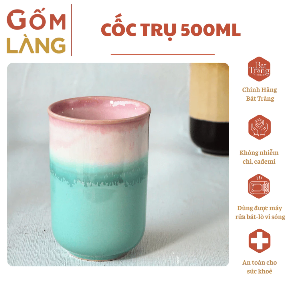 Bat Trang Flame-Glazed Ceramic Mug 500ml (Iridescent Flame Pattern) – Enjoy Water, Tea, Coffee in Bliss