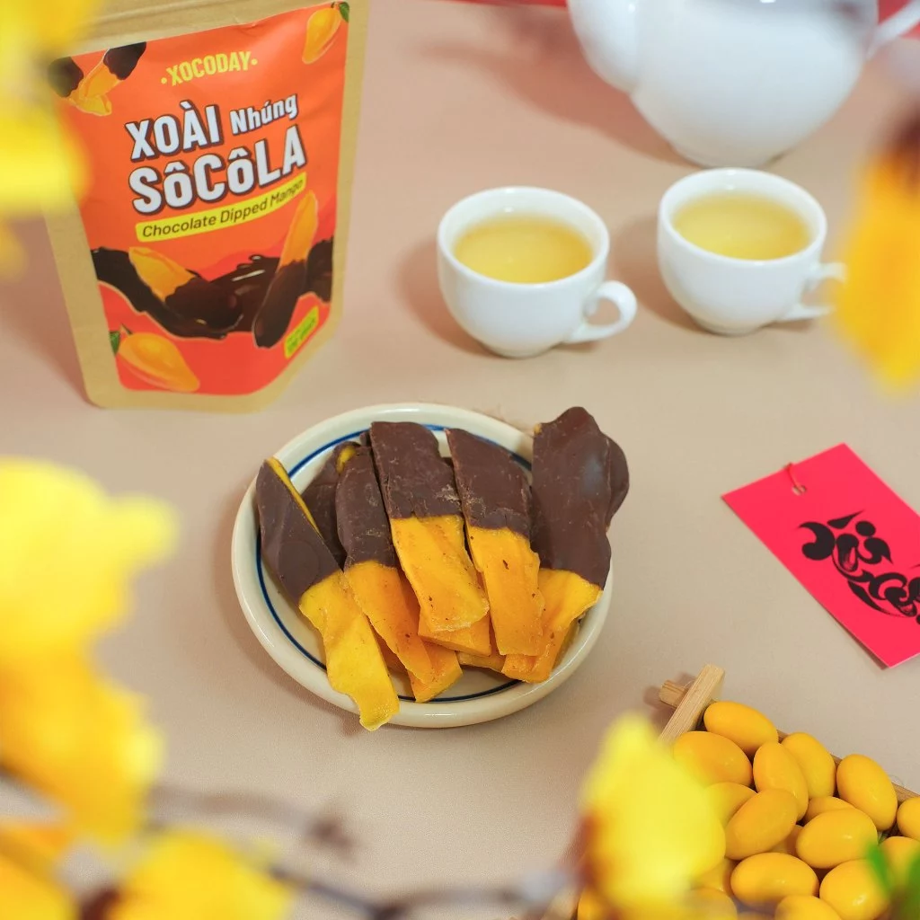 ベトナムの太陽をたっぷり浴びて育ったマンゴーを丁寧にドライ加工し、その濃厚な甘酸っぱさを引き出しました。さらに、厳選されたカカオから作られたリッチなチョコレートで一つ一つ丁寧にディップ。マンゴーの爽やかな酸味とチョコレートのまろやかな甘さが絶妙に絡み合い、一度食べたら忘れられない味わいです。