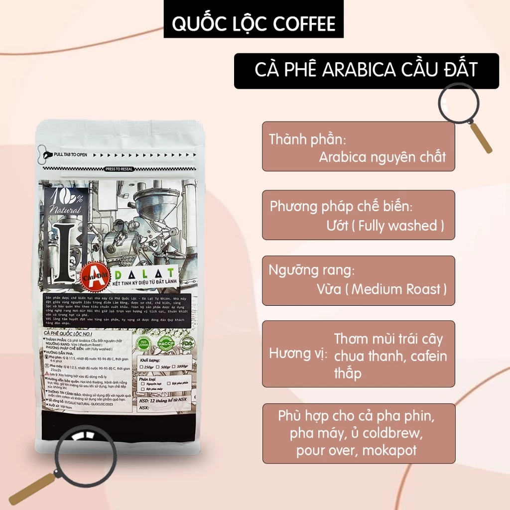 Arabica Cau Dat NO1 Pure Roasted Coffee Beans 1kg - Quoc Loc