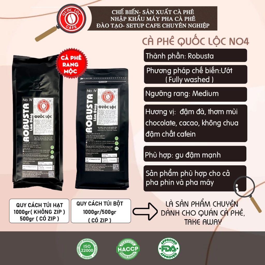 Quoc Loc NO4 Pure Robusta Ground Roasted Coffee for Machine & Filter 500g