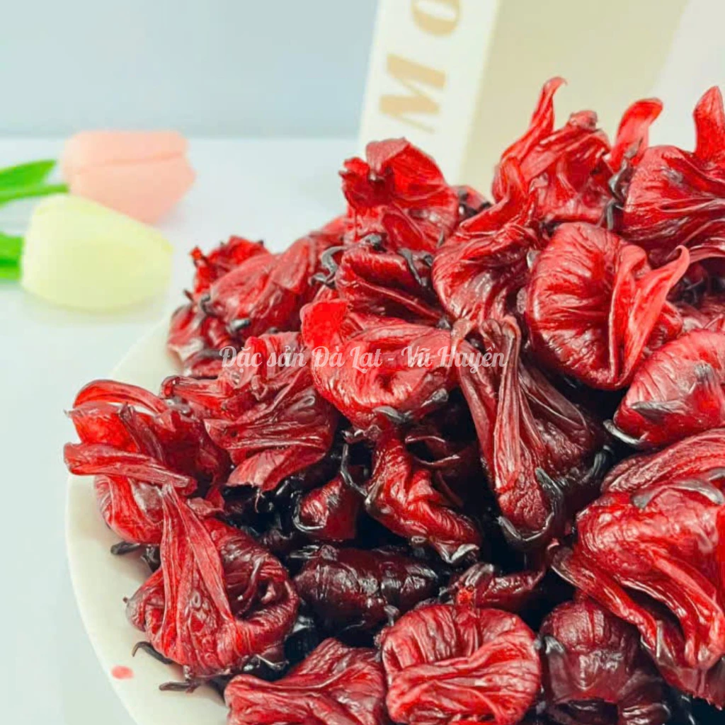 Da Lat Specialty Dried Red Hibiscus Flower Petals 250g Zip Bag - Rich Sweet & Sour Flavor, Thick Petals