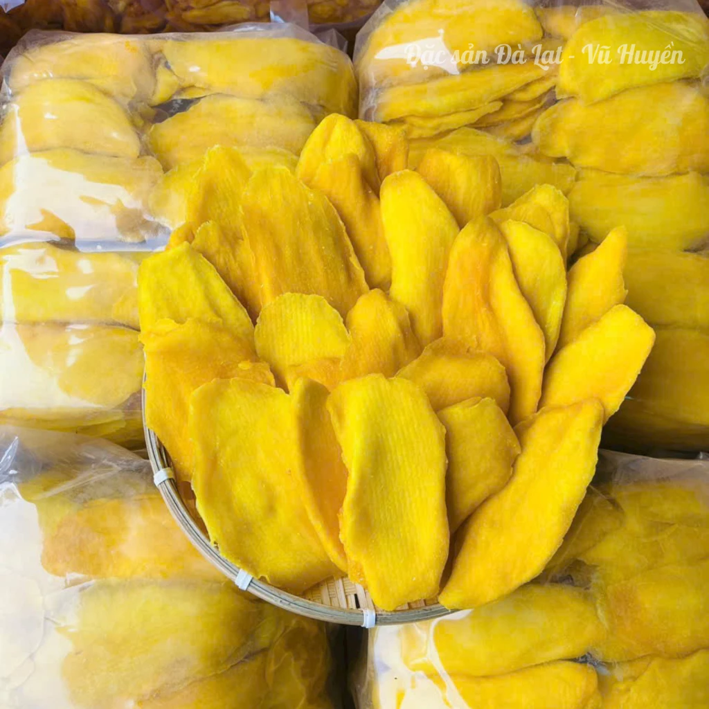 ダラットの山間地域の食文化が凝縮された、大胆かつ洗練された組み合わせが、この塩唐辛子マンゴーソフトドライです。黄金色に輝く肉厚なマンゴーは、赤みがかった塩唐辛子がまぶされ、まるで太陽の光を浴びたジャムのようです。一口食べると、まず舌先にピリッとした刺激が広がり、次に繊維の少ないマンゴーのしっとりとした柔らかな食感が続き、最後にマンゴー特有のすっきりとした甘酸っぱい後味が残ります。この絶妙なハーモニーは、一度食べたら止まらない魅力に満ちています。