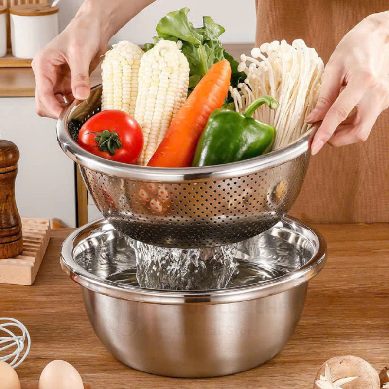 このゴリラシェフの高品質ステンレスボウルがあれば、キッチンでの作業が格段に快適になります。野菜や果物の水洗い、食材の混ぜ合わせ、さらには調理まで、この多機能ボウル一つで様々な用途に対応可能です。