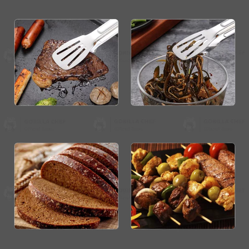GORILLA CHEF Professional Square Stainless Steel Multi-functional Food Tongs 27cm