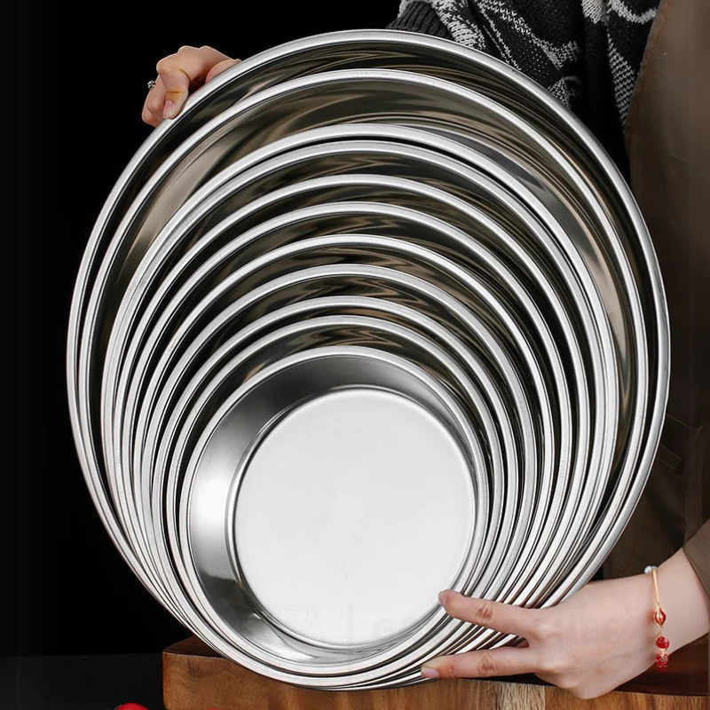 GORILLA CHEF 30cm Flat Bottom Stainless Steel Plate for Steaming & Oven Use, Multipurpose Dish