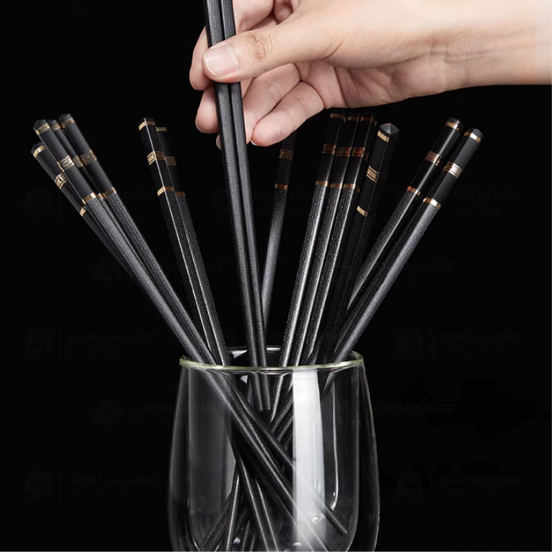 ゴリラシェフの箸は、単なる食事用具ではなく、先端素材の研究から生まれた逸品です。標準的な23cmの長さで、深みのあるエレガントな黒を基調とし、箸の持ち手部分には洗練されたシンプルな金や銀の模様が施されています。このデザインは、食卓に高級感を添えるだけでなく、あらゆるユーザーにしっかりとした持ちやすさと完璧なバランスを提供します。