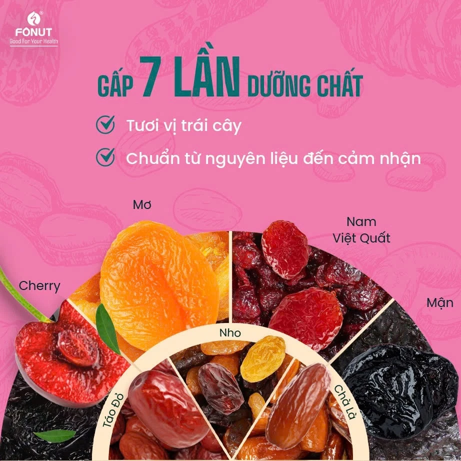 Fonut 7-Kind Mixed Soft Dried Fruits 350g - Sweet & Sour Healthy Snack for Pregnant Women & Diet
