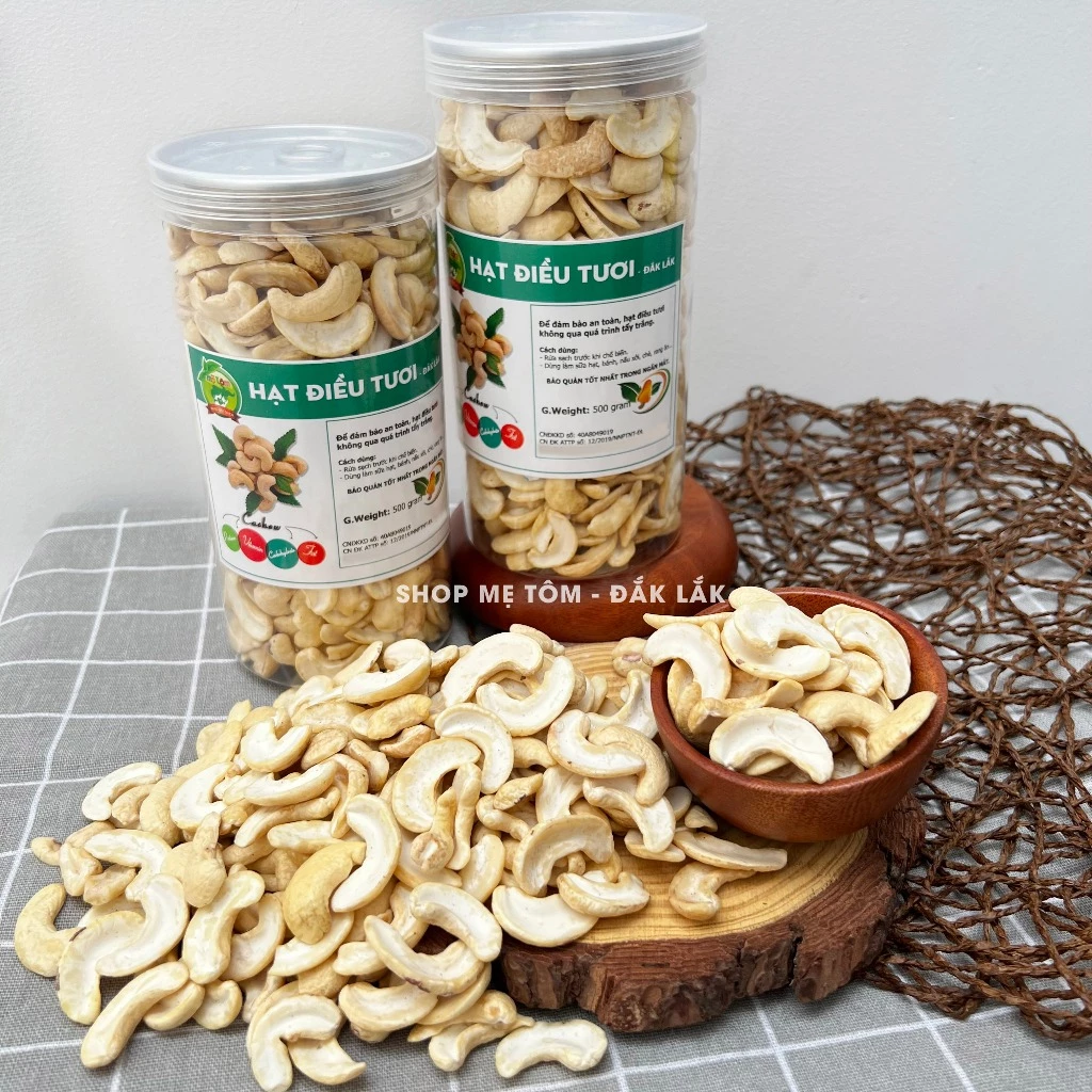 Shop Mẹ Tômの生カシューナッツ割れは、殻を剥いたばかりの新鮮な生カシューナッツが、手作業での加工中に半分や3つに割れたものです。形は不揃いですが、鮮度、クリーミーさ、微量栄養素の含有量は、形が整ったものと全く同等です。500gのジップバッグ入りで、ナッツミルク作り、お菓子作り、料理に頻繁にカシューナッツを使用する方で、見た目にこだわらない方には特におすすめです。大幅なコスト削減を実現し、ご家庭の食費を節約できます。