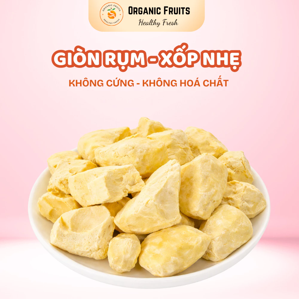 ・100% 新鮮なRi6ドリアン: ベトナムのヴィンロン省カイモン地方で自然に育った、完熟Ri6ドリアンのみを厳選。果肉が厚く、種が小さく、濃い黄色をしたドリアンだけが加工されます。