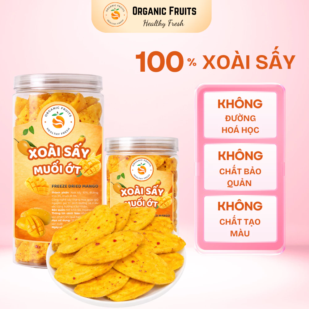 Organic Fruitsの塩唐辛子ドライマンゴー1200mlは、黄金色に熟したマンゴーと特別に調合された独自の塩唐辛子パウダーの完璧なハーモニーです。熟しすぎると形が崩れやすいため、製品では適度な酸味としっかりとした果肉の食感を保つために、食べ頃のマンゴーを厳選しています。