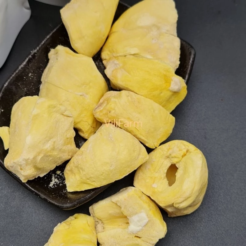 一般的な乾燥ドリアンが粉々になりがちなのとは異なり、Vilifarmの製品は、黄金色で形が崩れていない、しっかりとしたドリアン果肉が特徴です。