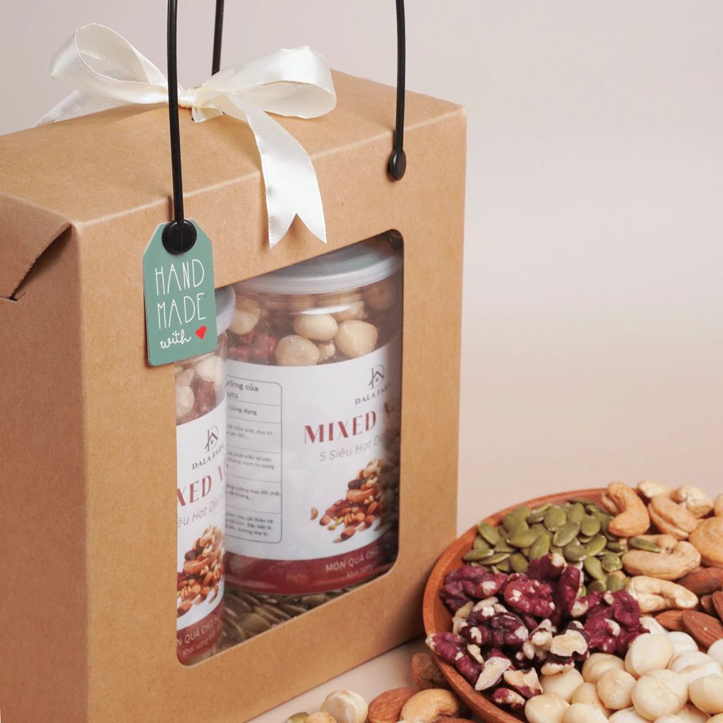 500gのDALAの瓶には、厳選された輸入ナッツとベトナム特産のナッツが絶妙なバランスで配合されています。