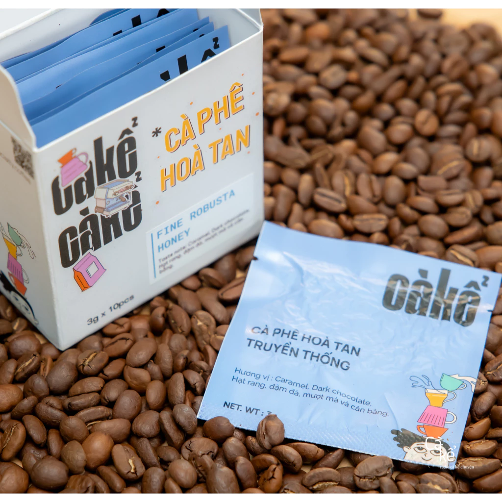 このインスタントコーヒーは、完熟したロブスタ豆を「ハニープロセス(Sơ chế mật)」で精製しています。通常洗浄される果肉の甘い部分をあえて残して天日乾燥させることで、その天然の甘みが豆の芯まで深く浸透します。さらに、最先端技術である「フリーズドライ(Freeze Dried)」製法により、ファインロブスタ豆の持つ豊かな風味、濃厚なコク、そして甘い余韻が、化学添加物や砂糖を一切使うことなく、輝くコーヒー結晶として凝縮されています。