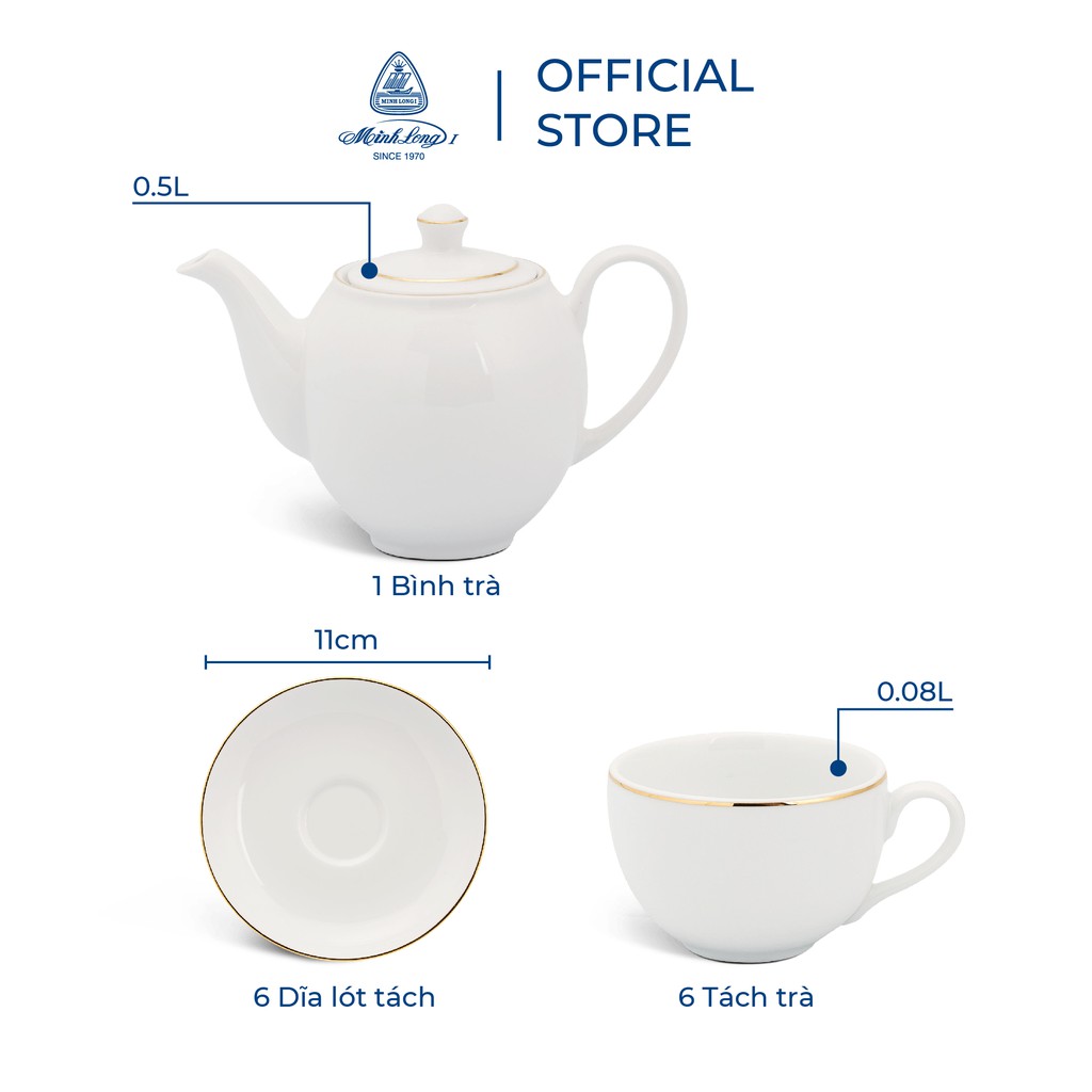 Minh Long Porcelain Teapot Set 0.5 L - Camellia - Gold Thread
