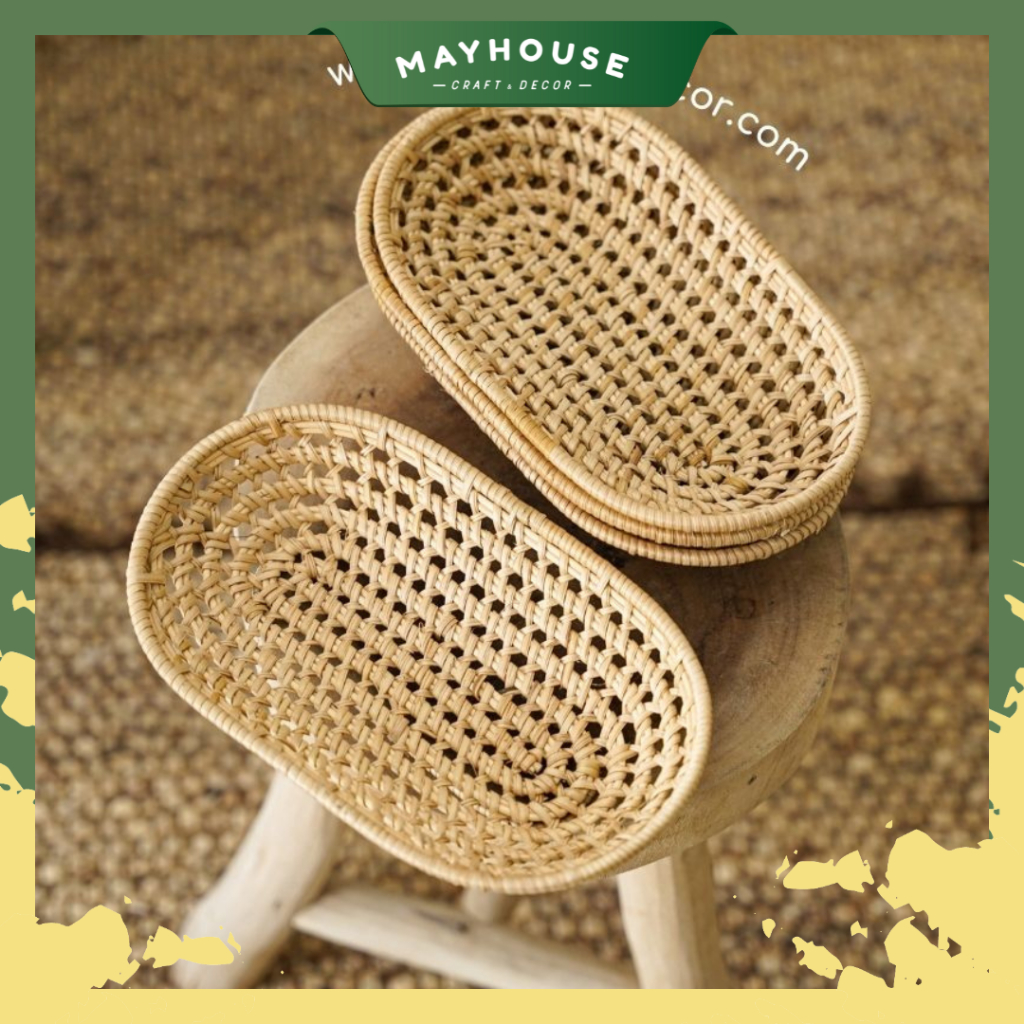 MAYHOUSE CRAFT & DECOR rattan tray for storing candies and fruits decorates the dining table