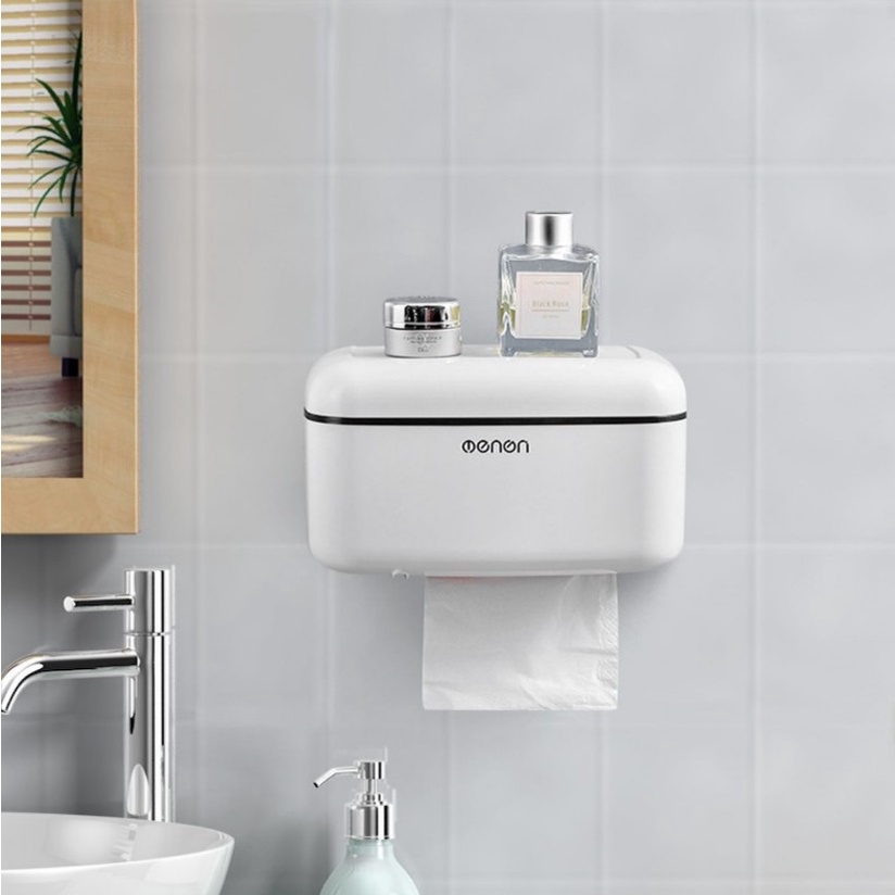 Genuine OENON Toilet Paper Box Installed on Ceramic Tile Walls with Extra Storage Compartment