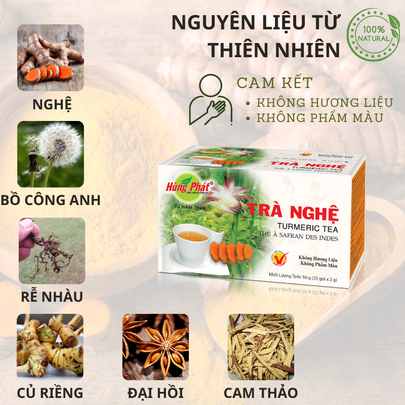 Hung Phat Turmeric Tea Box of 25 Packets - Turmeric Tea - Genuine Distributor from Tue Duc