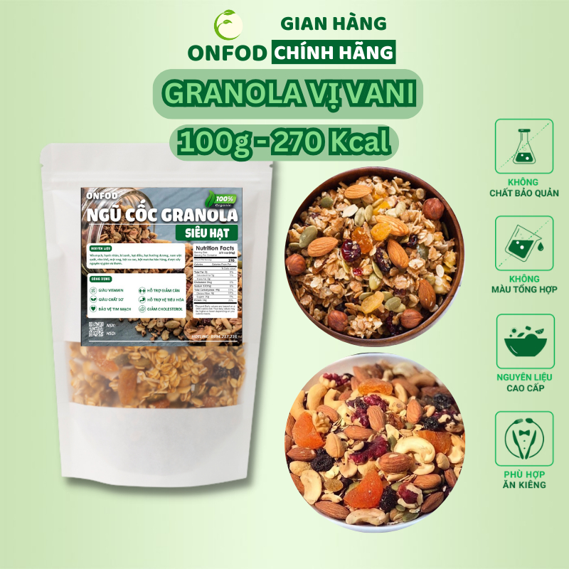 ONFOD super grain granola cereal with vanilla flavor for dieters, weight loss, and diabetics 250g