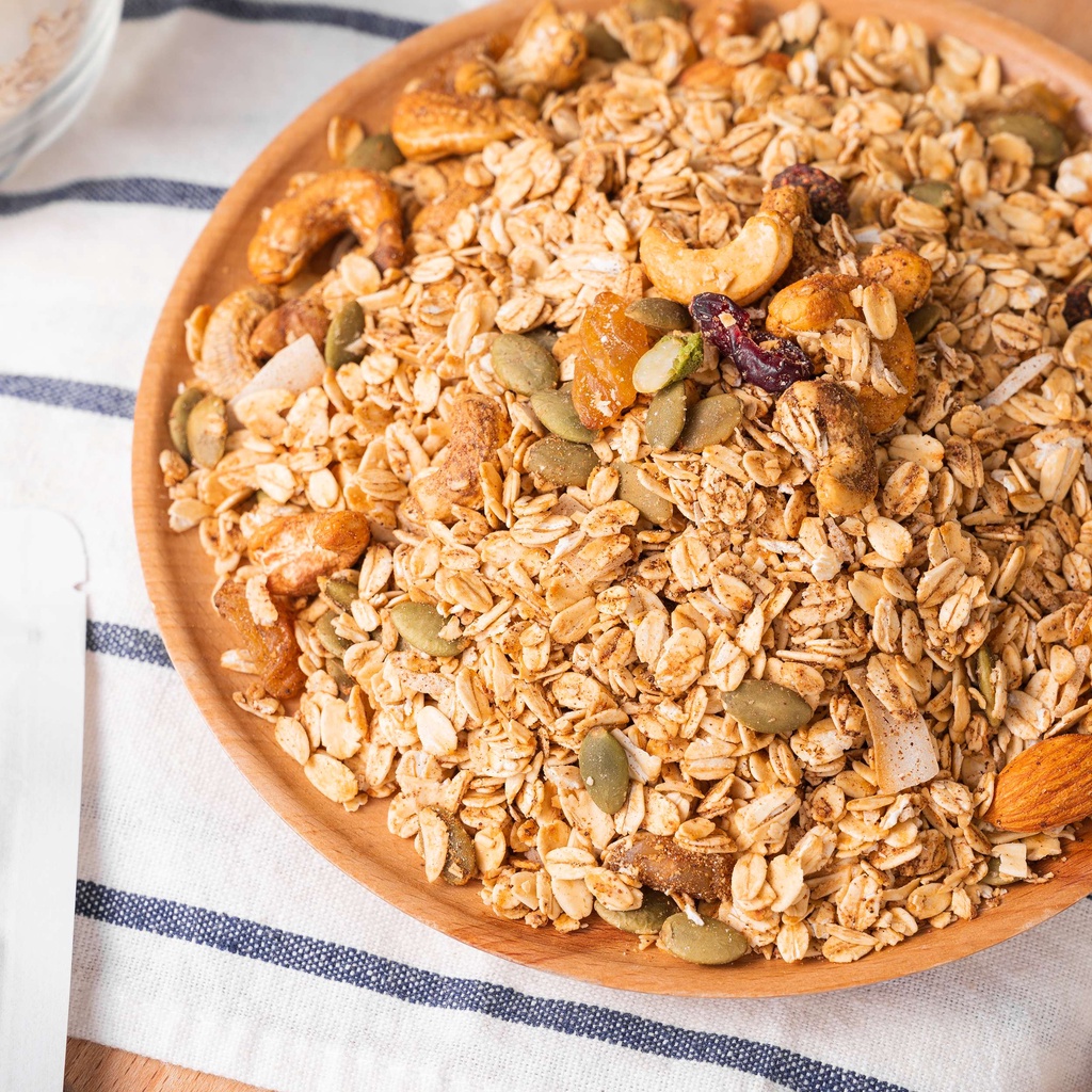 このグラノーラは、健康に良い飽和脂肪が含まれており、血圧の安定や心血管疾患の予防に役立ちます。さらに、オメガ3や葉酸が豊富に含まれているため、妊娠中の女性や成長期のお子様にも最適です。健康的な体を維持し、バランスの取れた食生活をサポートする理想的な選択肢です。