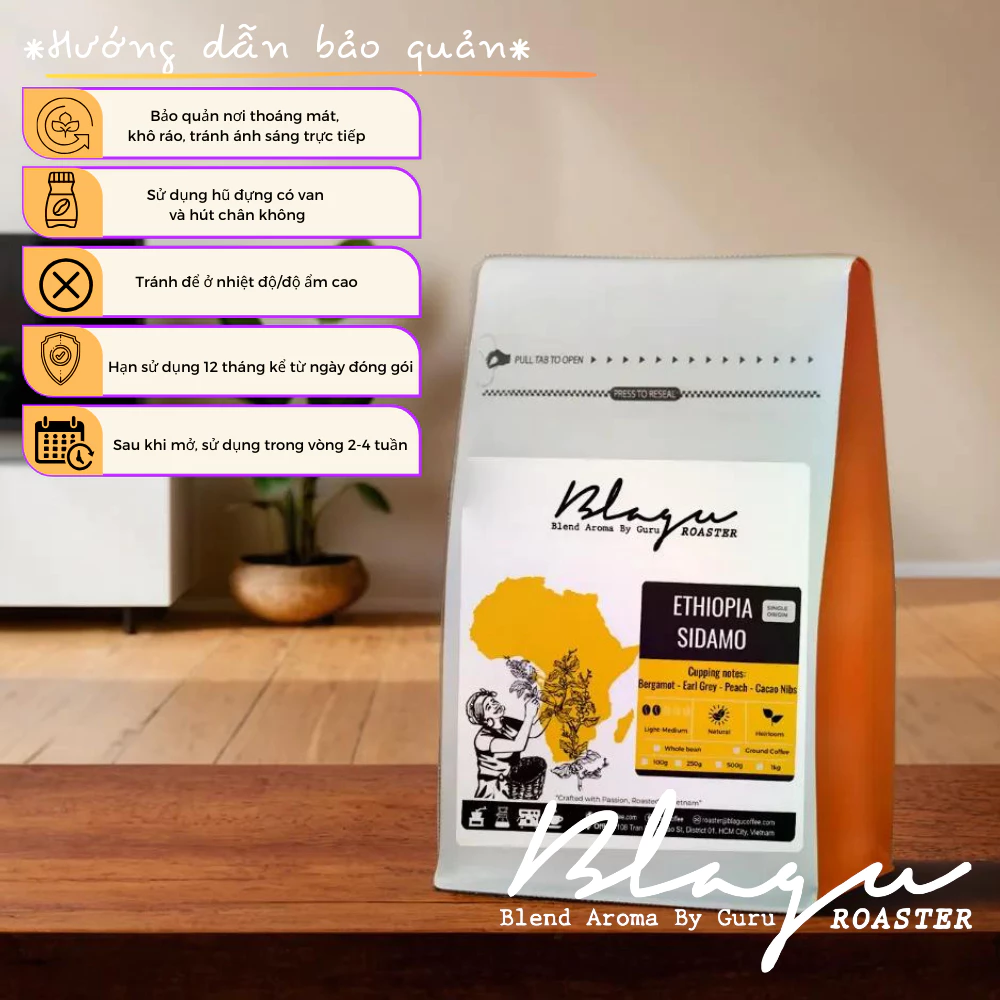 『ブラグー』エチオピア グジ ハンベラ フレンチプレス用 挽き豆 (中浅煎り) - 100%アラビカ種 Heirloom - 250g